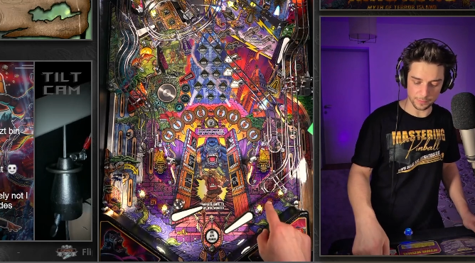 Here's a nice drill to help you stay in control during a right inlane feed on King Kong, which can be challenging. If the ball comes down slow enough, you can practice your rolling backhands into the Cave and Gong shot. However, if the ball is too fast to stop it on the flipper, you can get into trouble. That's when the Shatz practice comes into play to save the ball. The goal is to shoot the Cave or Gong over and over again. You can also practice your loop passes on King Kong shooting the left or right orbit, give it a try!